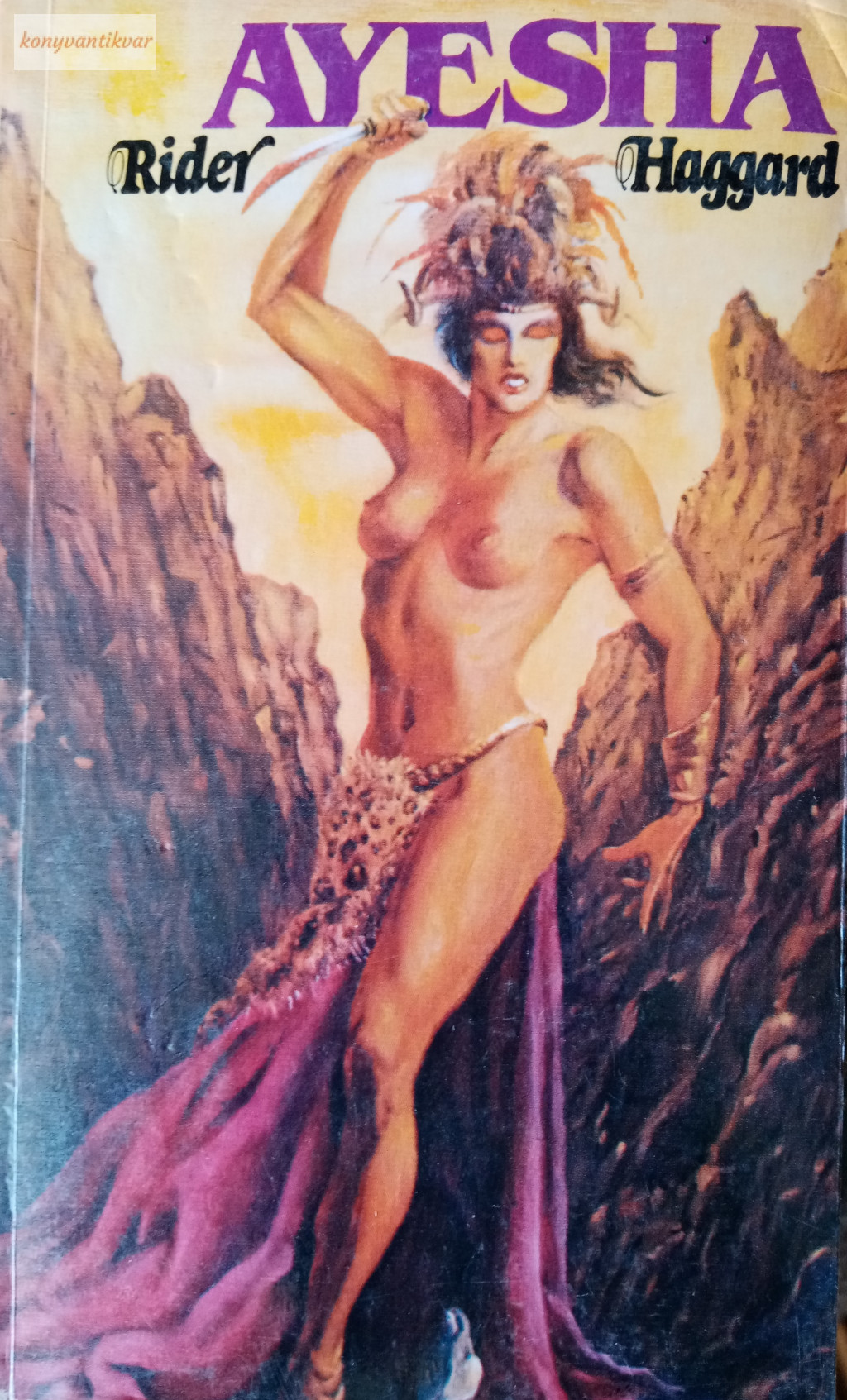 „Minden további szó nélkül lerázta fátyolát és ragyogva bontakozott ki belőle, mint valamely fényes kígyó, mikor bőrét elveti… Elvetette magától fönségét, rémességét és hidegségét, elvetette magától, mint fátylát, és előttem a kísértés megtestesüléseképpen a legtökéletesebb asszony állt, aki valaha élt.” Sir Rider Haggard (1856-1925) nemcsak kiváló angol gyarmati tisztviselő volt, hanem kora híres írója is, aki a gondjára bízott területeken nyitott szemmel és füllel járt. Hatott rá a dél-afrikai táj, a nép, a folklór és történelem. Nem idegen tőle az elsüllyedt világok vagy az igazi öröklét gondolata sem. Haggard kicsit misztikus írásai egy időben divatosak voltak szerte a világon, így Magyarországon is. Ma újra felfedezhetjük ezt az érdekes, igzalmas világot – az 1896-ban megjelent s azóta számtalan kiadást megért kötetnek éppúgy nem árthatott az idő, mint Ayeshának, a könyv csodálatos-félelmetes hősnőjének.
